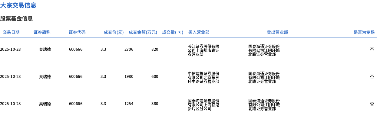 奥瑞德今日大宗交易折价成交1800万股,成交额5940万元