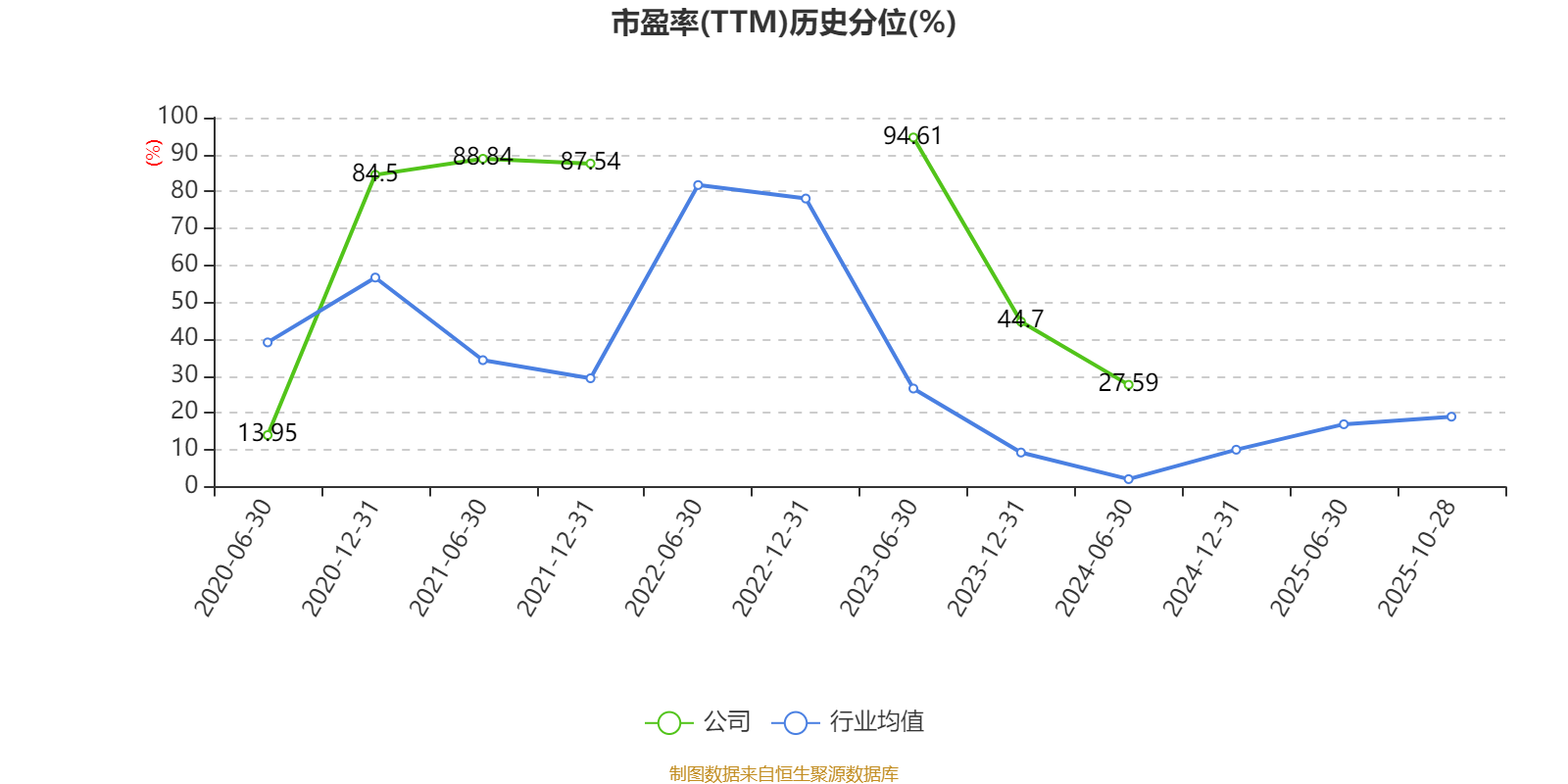 市盈率、市净率为负时,不显示当期分位数,会导致折线图中断。