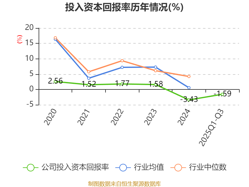 盈利能力方面, 2025年前三季度公司加权平均净资产收益率为-2.42%,同比上升0.73个百分点。公司2025年前三季度投入资本回报率为-1.59%,较上年同期上升0.99个百分点。