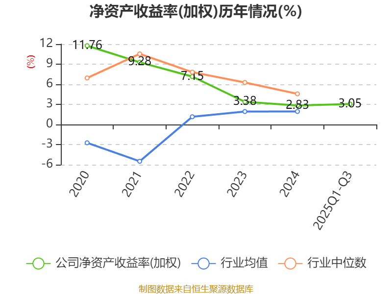 盈利能力方面, 2025年前三季度公司加权平均净资产收益率为3.05%,同比上升1.11个百分点。公司2025年前三季度投入资本回报率为2.99%,较上年同期上升1.13个百分点。