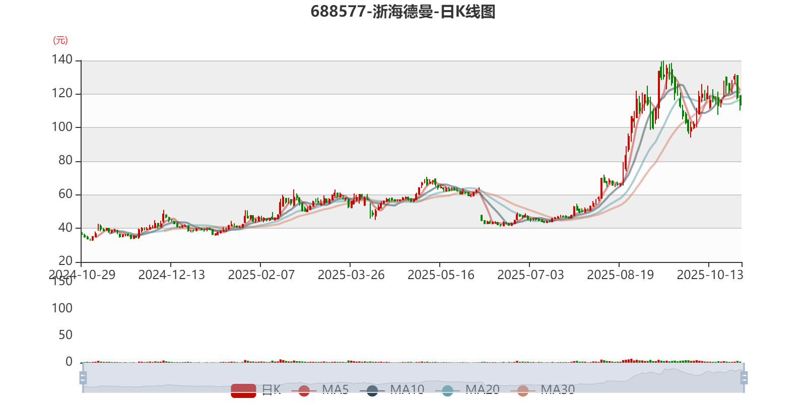 以10月28日收盘价计算,浙海德曼目前市盈率(TTM)约为320.71倍,市净率(LF)约12.66倍,市销率(TTM)约15.24倍。