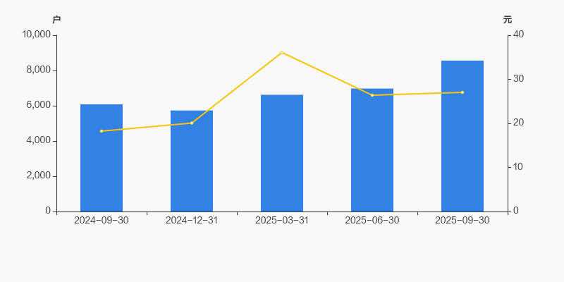 自2024年12月31日以来,公司股东户数连续3期上涨,截至目前增幅为49.35%。2024年12月31日至2025年9月30日区间股价上涨34.73%。