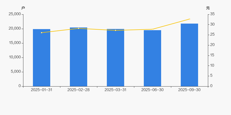 2025年1月31日至今,公司股东户数有所增长,区间涨幅为9.62%。2025年1月31日至2025年9月30日区间股价上涨25.35%。
