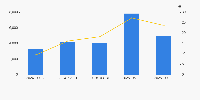 2024年9月30日至今,公司股东户数显著增长,区间涨幅为49.10%。2024年9月30日至2025年9月30日区间股价上涨147.97%。