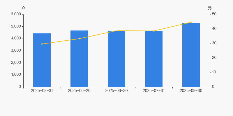 截至2025年9月30日,公司最新总股本为5600万股,其中流通股本为2646.1万股。户均持有流通股数量由上期的5716股下降至5008股,户均流通市值22.38万元。