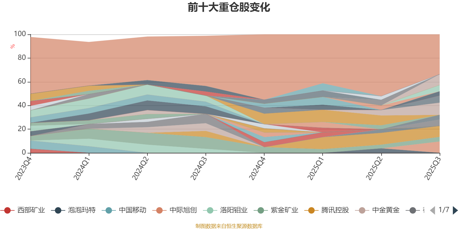 截至2025年三季度末,基金十大重仓股分别是中芯国际、中际旭创、腾讯控股、新易盛、沪电股份、指南针、华虹半导体、紫金矿业、寒武纪、阿里巴巴-W。