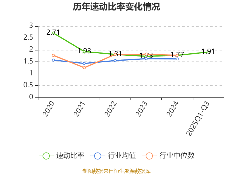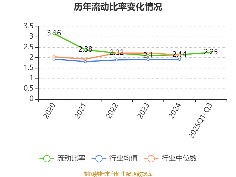 2025年前三季度,公司流动比率为2.25,速动比率为1.91。