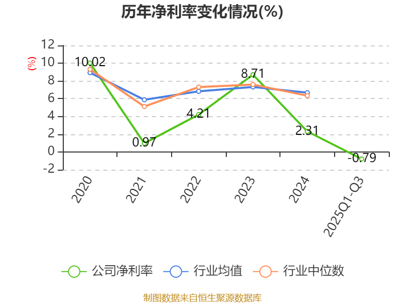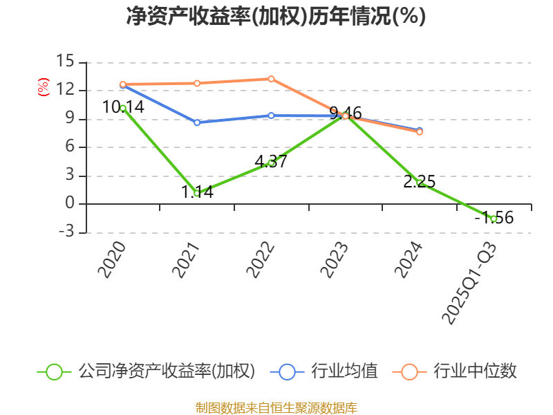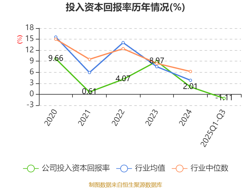 盈利能力方面, 2025年前三季度公司加权平均净资产收益率为-1.56%,同比下降3.56个百分点。公司2025年前三季度投入资本回报率为-1.11%,较上年同期下降3.81个百分点。