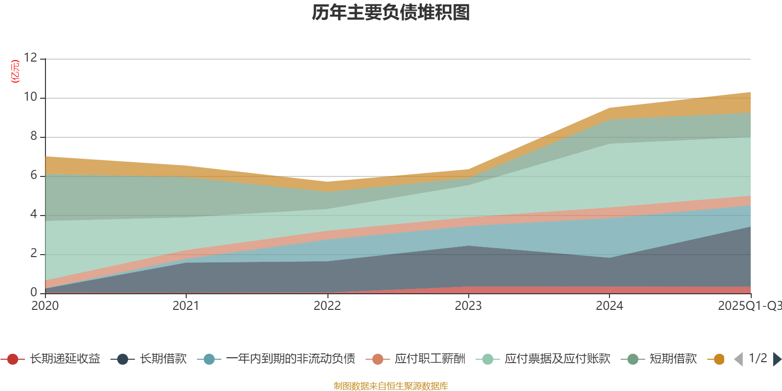 负债重大变化方面,截至2025年三季度末,公司长期借款较上年末增加108.74%,占公司总资产比重上升7.36个百分点;一年内到期的非流动负债较上年末减少46.36%,占公司总资产比重下降5.32个百分点;应付票据及应付账款较上年末减少8.08%,占公司总资产比重下降2.42个百分点;租赁负债较上年末增加165.8%,占公司总资产比重上升1.28个百分点。