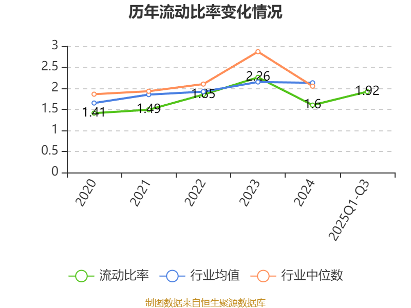 2025年前三季度,公司流动比率为1.92,速动比率为1.48。