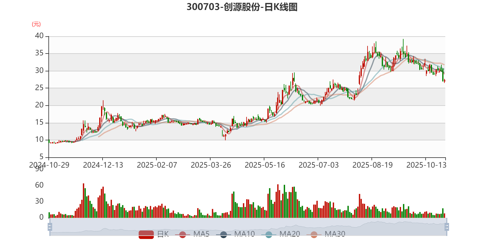 以10月28日收盘价计算,创源股份目前市盈率(TTM)约为38.55倍,市净率(LF)约5.28倍,市销率(TTM)约2.29倍。