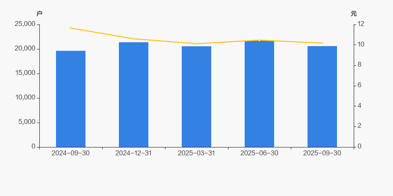 2024年9月30日至今,公司股东户数有所增长,区间涨幅为4.87%。2024年9月30日至2025年9月30日区间股价下降12.62%。