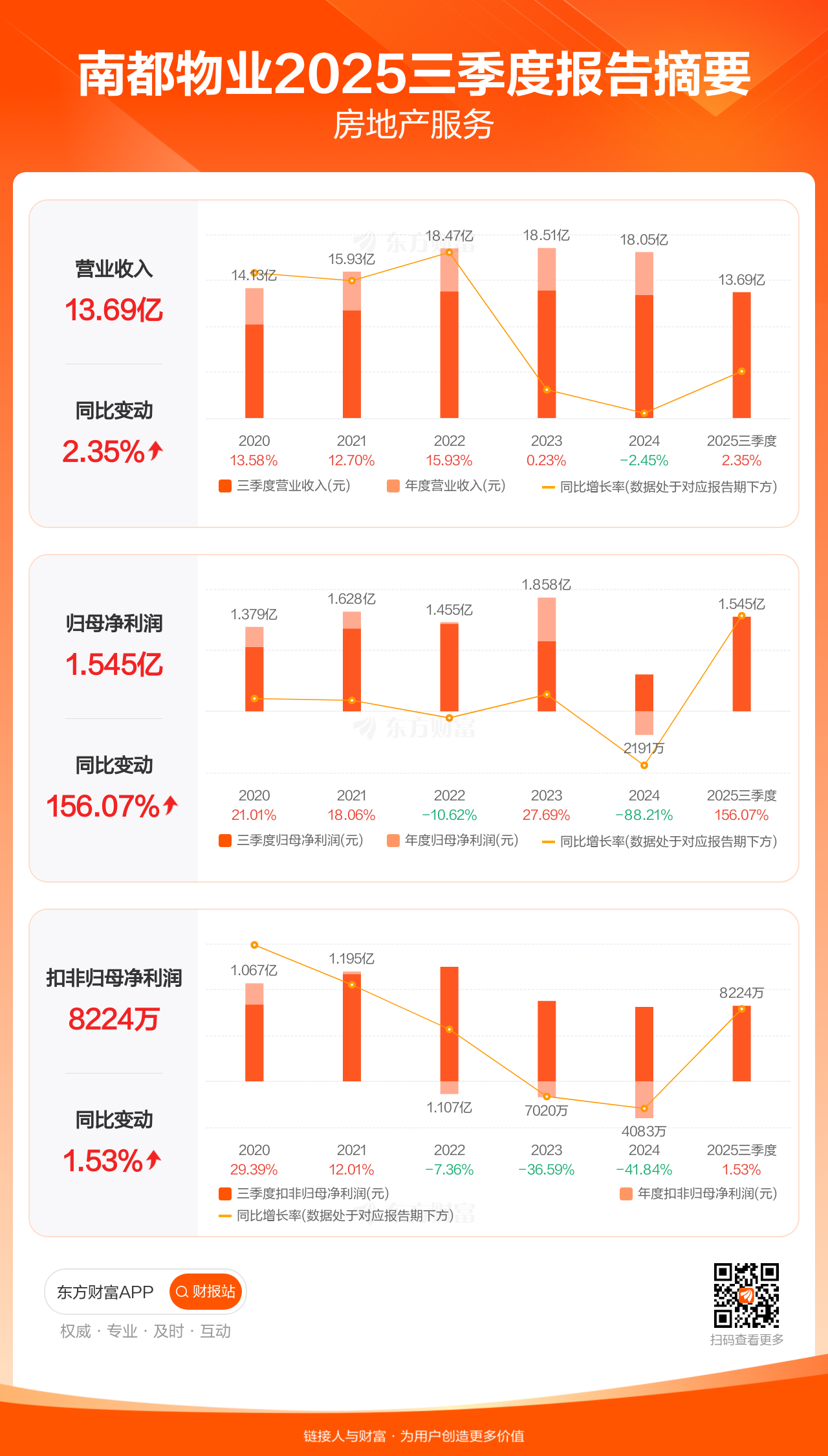 图解财报:南都物业前三季归母净利润1.54亿元,同比增长156.07%