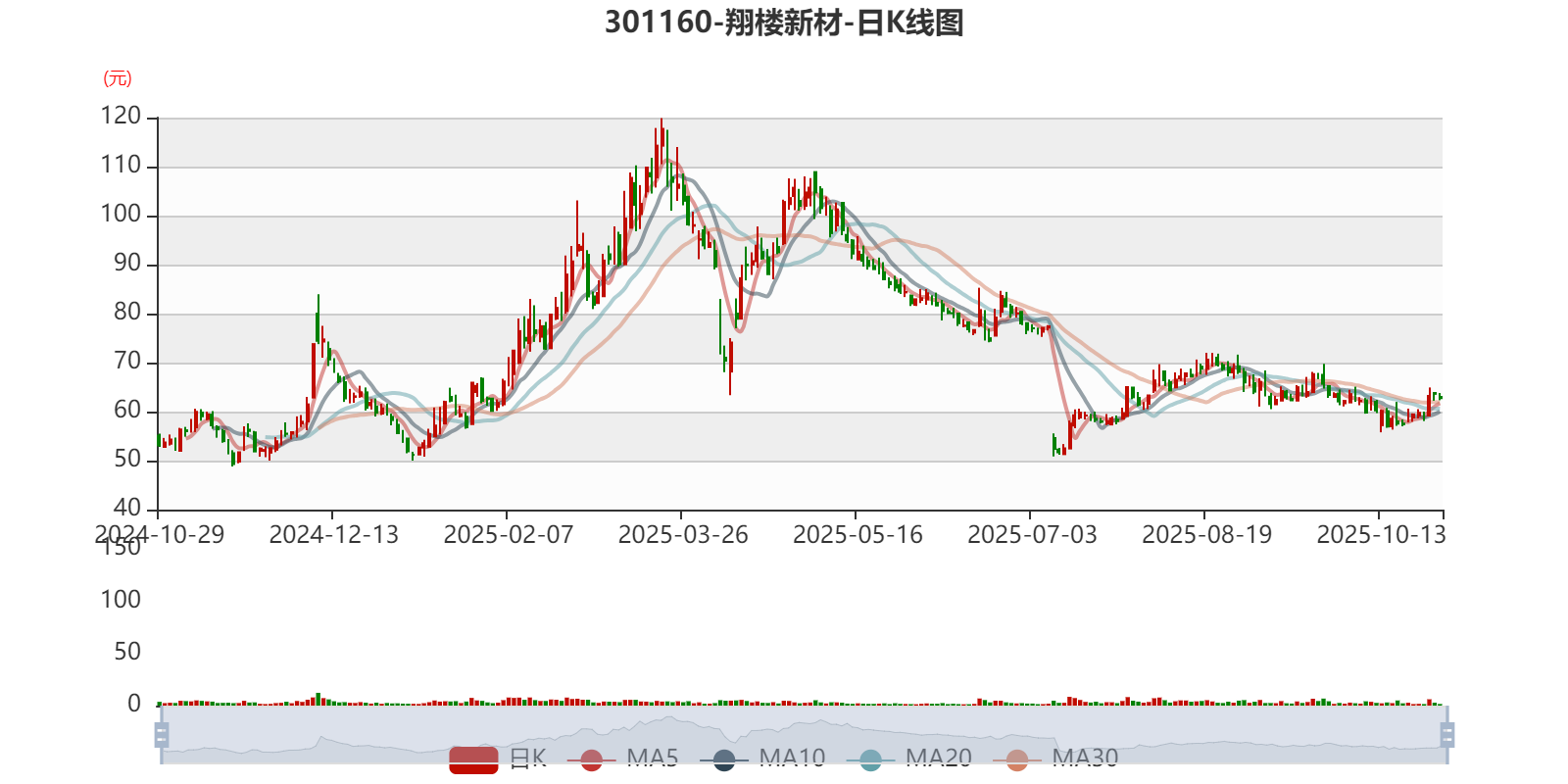 以10月28日收盘价计算,翔楼新材目前市盈率(TTM)约为33.1倍,市净率(LF)约4.18倍,市销率(TTM)约4.8倍。