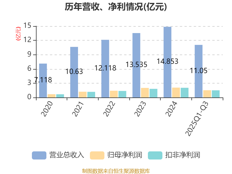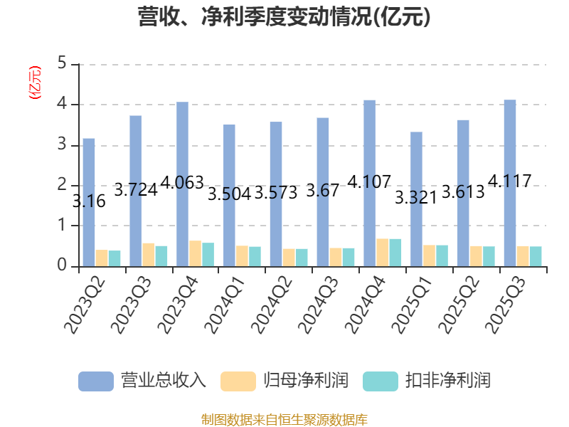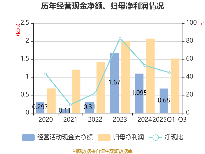 2025年前三季度,公司流动比率为4.16,速动比率为2.93。