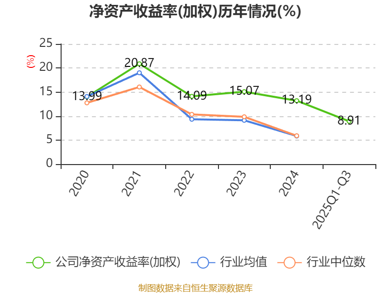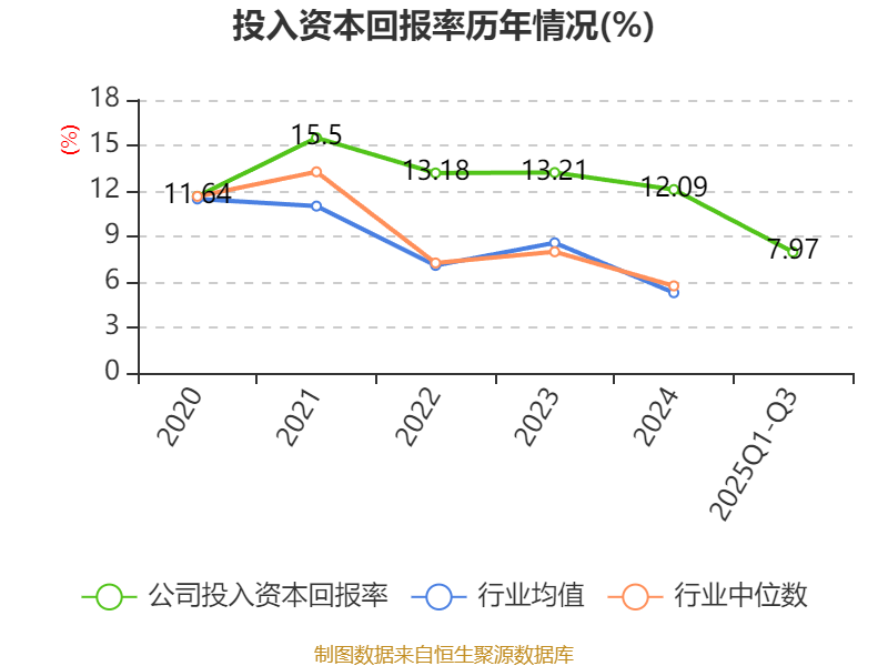 盈利能力方面, 2025年前三季度公司加权平均净资产收益率为8.91%,同比持平。公司2025年前三季度投入资本回报率为7.97%,较上年同期下降0.5个百分点。