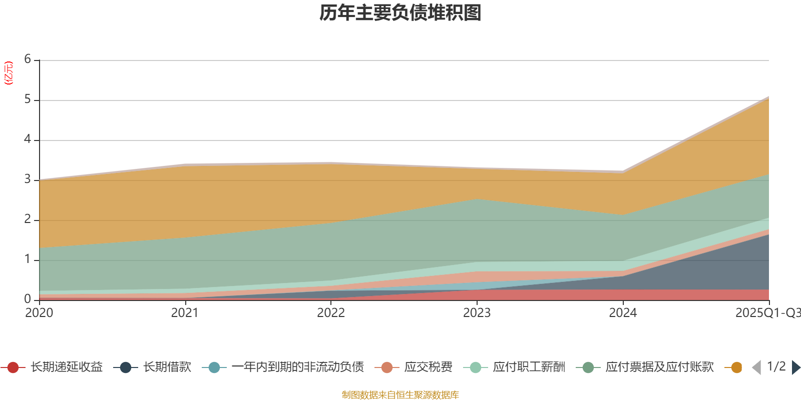 负债重大变化方面,截至2025年三季度末,公司长期借款较上年末增加318.84%,占公司总资产比重上升4.47个百分点;短期借款较上年末增加82.22%,占公司总资产比重上升3.17个百分点;应付票据及应付账款较上年末减少5.14%,占公司总资产比重下降0.97个百分点;长期递延收益较上年末减少2.41%,占公司总资产比重下降0.19个百分点。