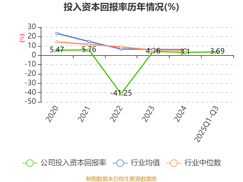 盈利能力方面, 2025年前三季度公司加权平均净资产收益率为4.79%,同比下降0.43个百分点。公司2025年前三季度投入资本回报率为3.69%,较上年同期下降0.13个百分点。