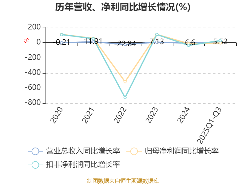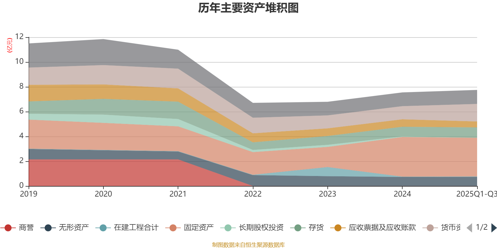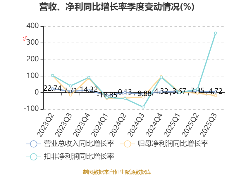 资产重大变化方面,截至2025年三季度末,公司货币资金较上年末增加32.45%,占公司总资产比重上升4.11个百分点;固定资产较上年末减少2.48%,占公司总资产比重下降2.12个百分点;应收票据及应收账款较上年末减少19.44%,占公司总资产比重下降1.7个百分点;预付款项较上年末增加265.73%,占公司总资产比重上升0.7个百分点。