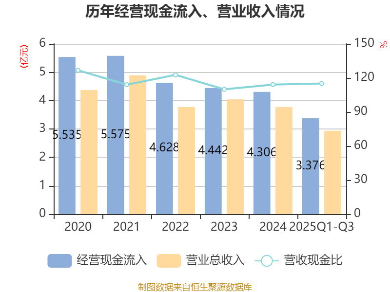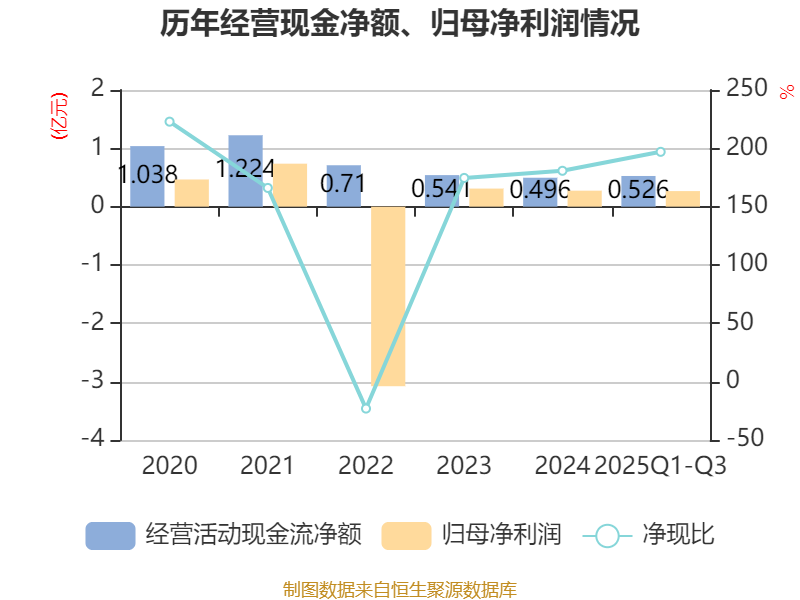 2025年前三季度,公司经营活动现金流净额为5263.58万元,同比增长62.75%;筹资活动现金流净额1517.98万元,同比减少2060.53万元;投资活动现金流净额-3076.1万元,上年同期为-5985.53万元。