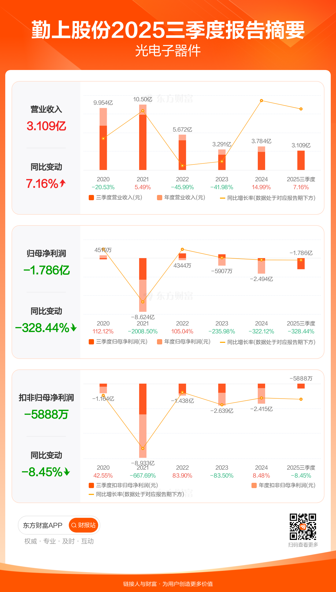 图解财报:勤上股份前三季归母净利润-1.79亿元,上年同期-4167.66万元