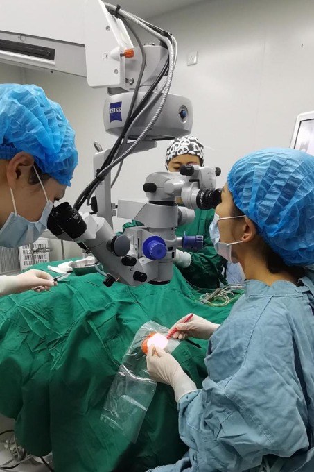 成都爱尔眼科医院白内障科副主任王文惠为参加“视觉无障碍·爱眼工程”项目的患者实施了白内障摘除手术