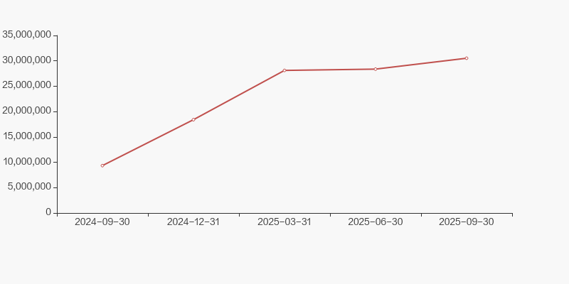 截至2025年9月30日,公司最新总股本为6.84亿股,其中流通股本为5.18亿股。户均持有流通股数量由上期的9065股上升至9564股,户均流通市值24.28万元。
