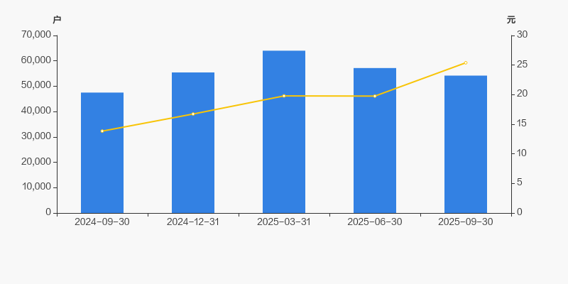 2024年9月30日至今,公司股东户数显著增长,区间涨幅为14.10%。2024年9月30日至2025年9月30日区间股价上涨83.42%。