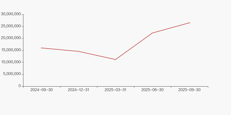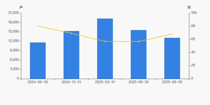 2024年9月30日至今,公司股东户数显著增长,区间涨幅为12.79%。2024年9月30日至2025年9月30日区间股价下降14.77%。