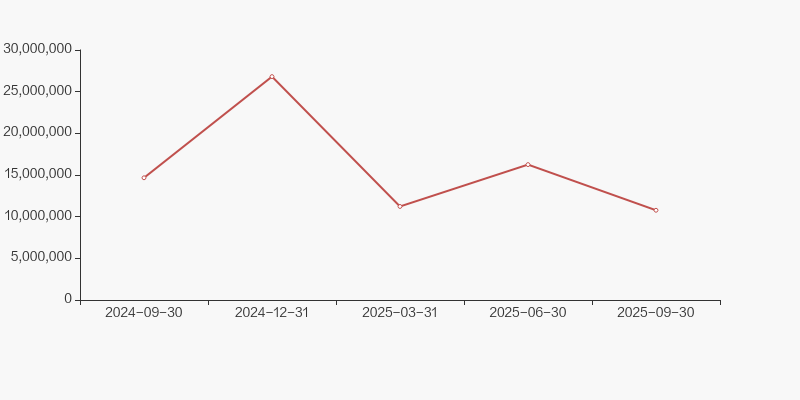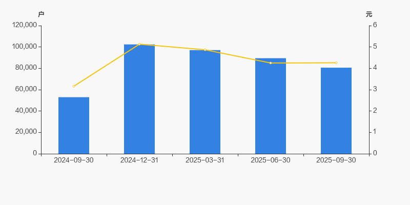 截至2025年9月30日,公司最新总股本为16.04亿股,其中流通股本为12.98亿股。户均持有流通股数量由上期的1.45万股上升至1.61万股,户均流通市值6.86万元。