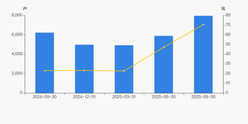 2024年9月30日至今,公司股东户数显著增长,区间涨幅为27.94%。2024年9月30日至2025年9月30日区间股价上涨205.85%。