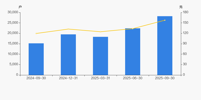 2024年9月30日至今,公司股东户数显著大幅增长,区间涨幅达85.71%。2024年9月30日至2025年9月30日区间股价上涨31.92%。
