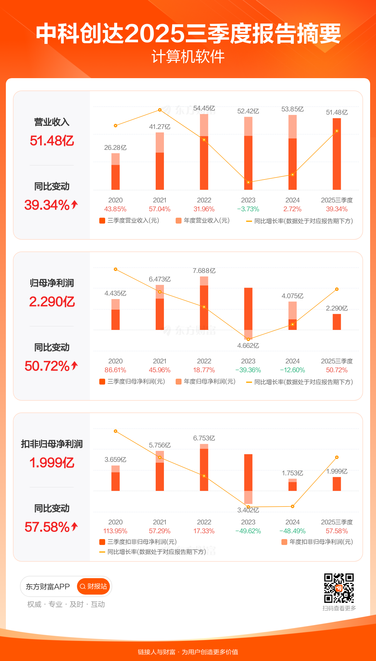 中科创达10月29日发布2025年三季报显示,公司前三季实现营业收入51.48亿元,同比增长39.34%;归母净利润2.29亿元,同比增长50.72%;扣非归母净利润2.00亿元,同比增长57.58%。