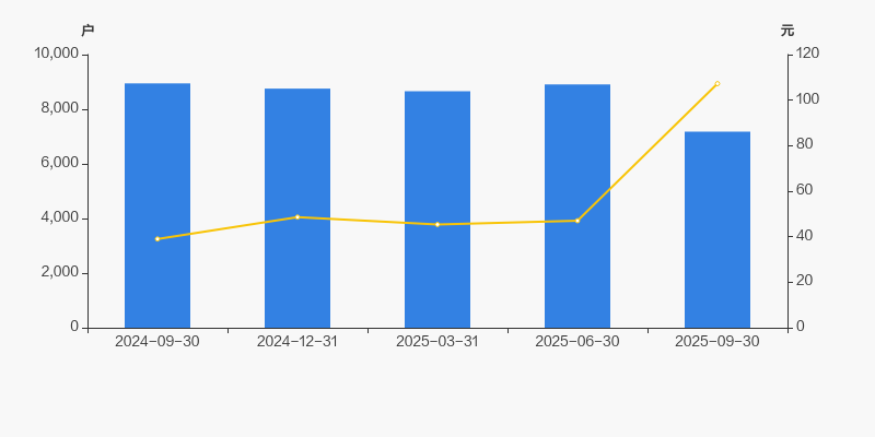 2024年9月30日至今,公司股东户数显著下降,区间跌幅为19.75%。2024年9月30日至2025年9月30日区间股价上涨175.08%。