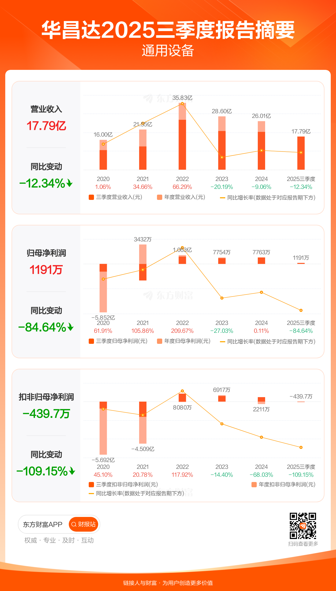 图解财报:华昌达前三季归母净利润1191.49万元,同比减少84.64%