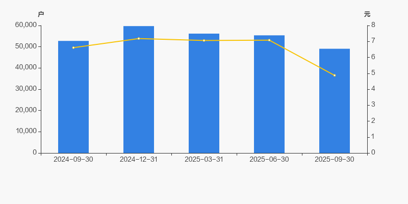 截至2025年9月30日,公司最新流通股本为6.05亿股。户均持有流通股数量由上期的1.09万股上升至1.23万股,户均流通市值6万元。