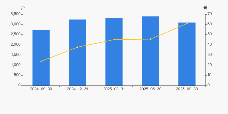 2024年9月30日至今,公司股东户数显著增长,区间涨幅为12.93%。2024年9月30日至2025年9月30日区间股价上涨155.55%。