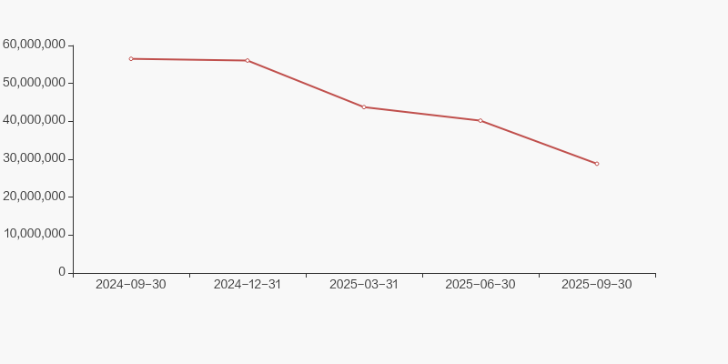 兴蓉环境2025年10月29日在三季度报告中披露,截至2025年9月30日公司股东户数为6.77万户,较上期(2025年6月30日)增加7048户,增幅达11.62%。