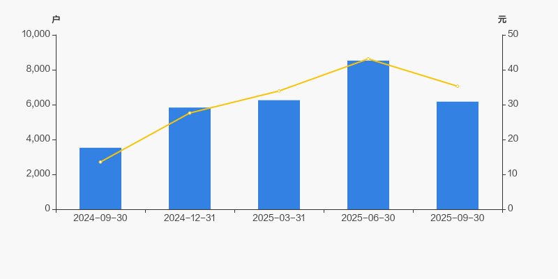 2024年9月30日至今,公司股东户数显著大幅增长,区间涨幅达74.99%。2024年9月30日至2025年9月30日区间股价上涨160.33%。