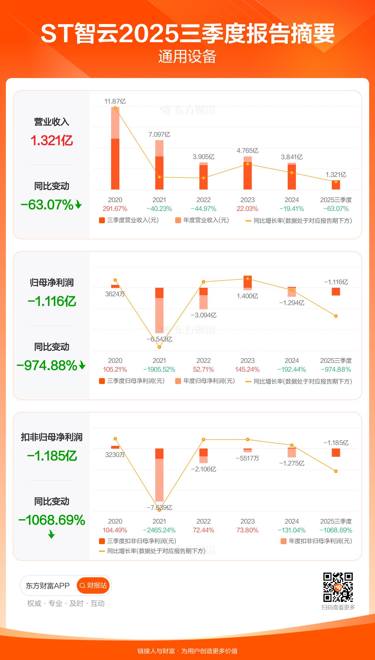 图解财报:ST智云前三季归母净利润-1.12亿元,上年同期1275.72万元