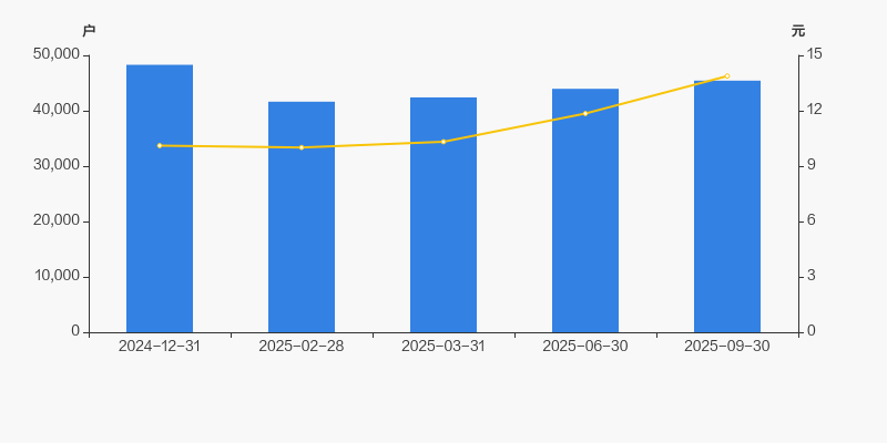 截至2025年9月30日,公司最新流通股本为5.37亿股。户均持有流通股数量由上期的1.22万股下降至1.18万股,户均流通市值16.4万元。