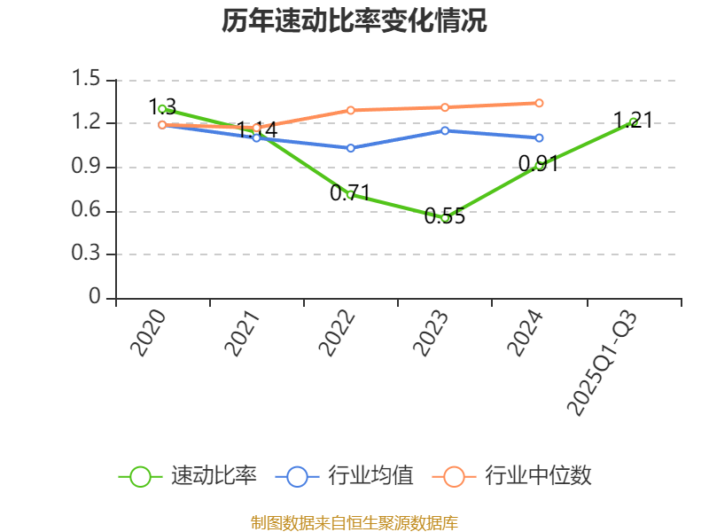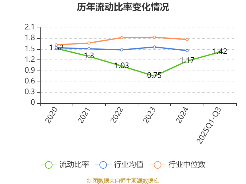 2025年前三季度,公司流动比率为1.42,速动比率为1.21。