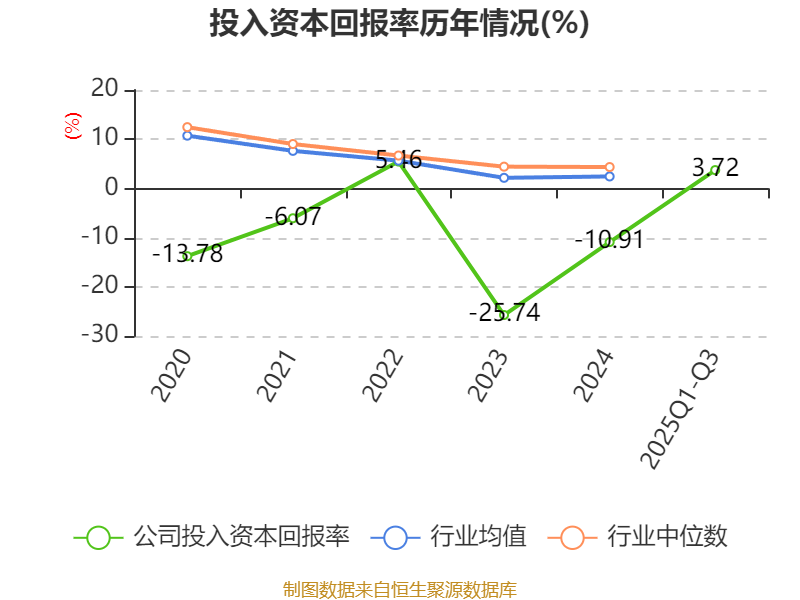 盈利能力方面, 2025年前三季度公司加权平均净资产收益率为4.39%,同比上升12.27个百分点。公司2025年前三季度投入资本回报率为3.72%,较上年同期上升8.32个百分点。