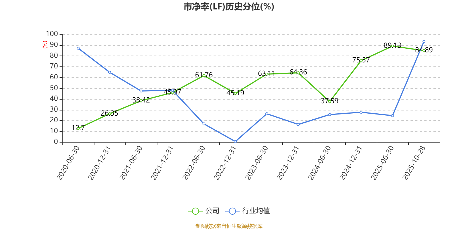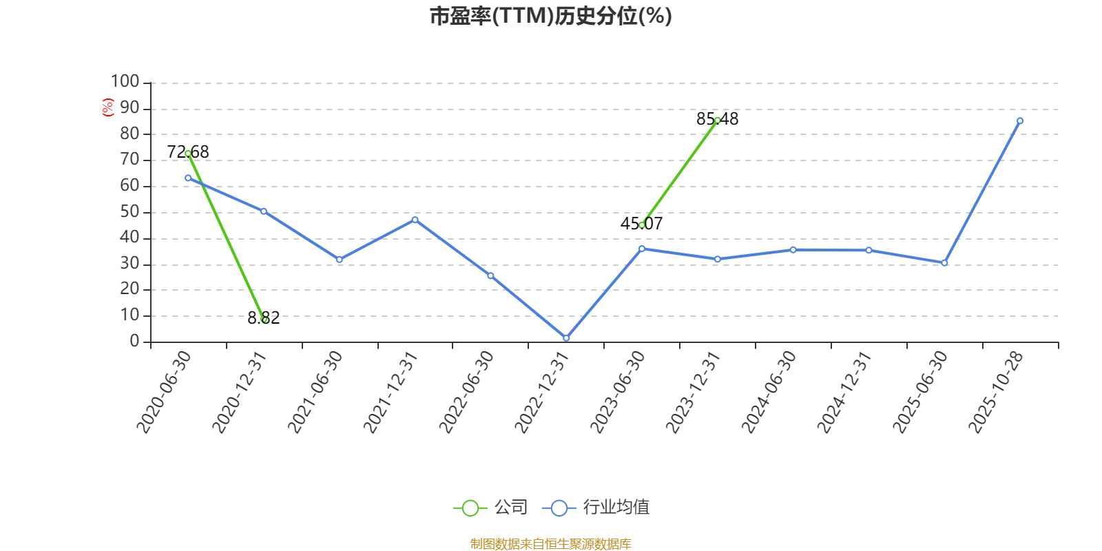 市盈率、市净率为负时,不显示当期分位数,会导致折线图中断。