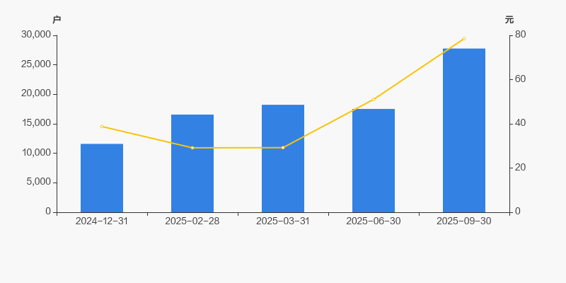 2024年12月31日至今,公司股东户数成倍增长,区间涨幅达139.49%。2024年12月31日至2025年9月30日区间股价上涨102.35%。