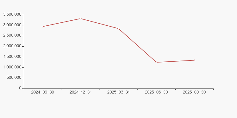 截至2025年9月30日,公司最新流通股本为3.83亿股。户均持有流通股数量由上期的4950股上升至5322股,户均流通市值10.2万元。