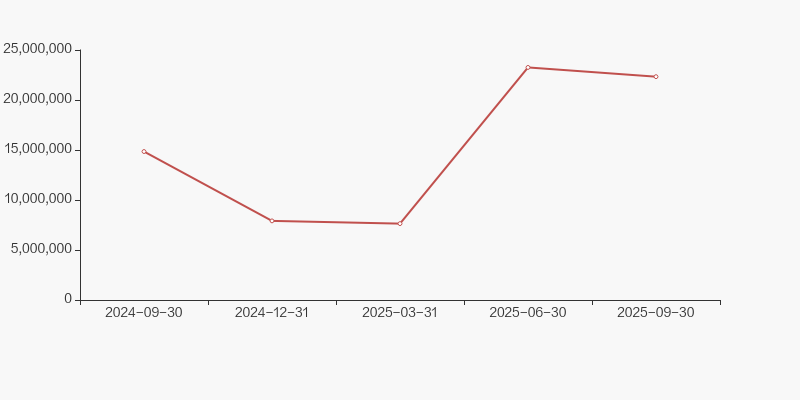 截至2025年9月30日,公司最新总股本为10.05亿股,其中流通股本为7.86亿股。户均持有流通股数量由上期的1.79万股上升至2.22万股,户均流通市值28.65万元。
