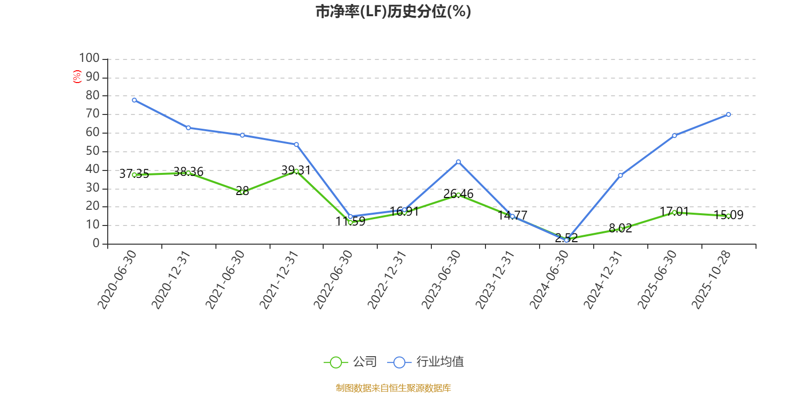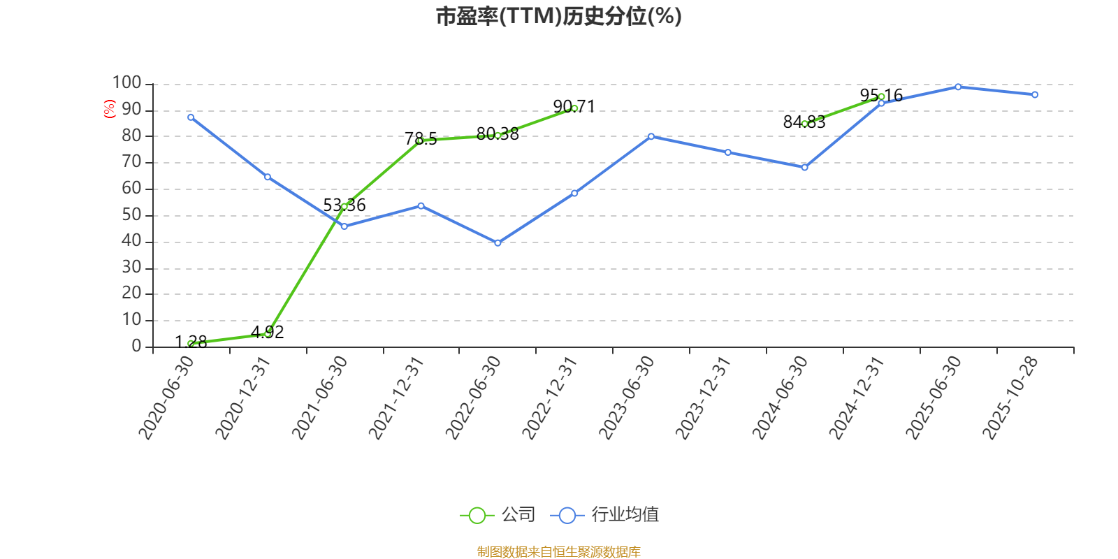 市盈率、市净率为负时,不显示当期分位数,会导致折线图中断。