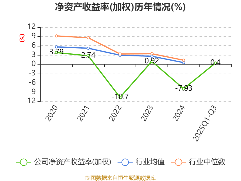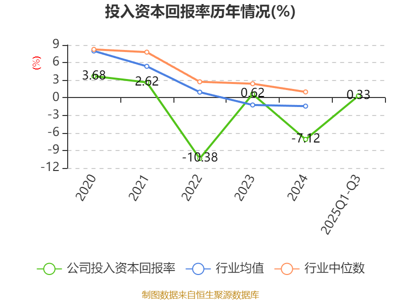 盈利能力方面, 2025年前三季度公司加权平均净资产收益率为0.4%,同比下降0.07个百分点。公司2025年前三季度投入资本回报率为0.33%,较上年同期上升0.06个百分点。