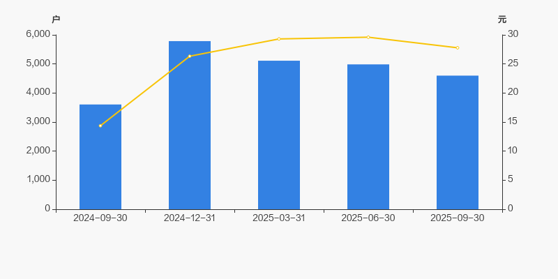 截至2025年9月30日,公司最新总股本为7647.91万股,其中流通股本为2300万股。户均持有流通股数量由上期的4614股上升至5002股,户均流通市值13.9万元。
